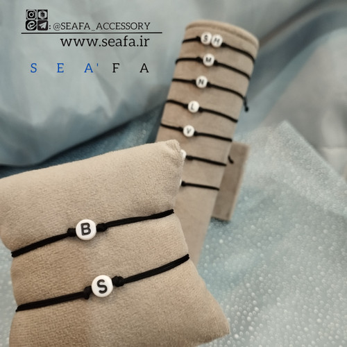 ناموجود دستبند حروف لاتین سفید مشکی با نخ مشکی _ سفارش از طریق اینستاگرام