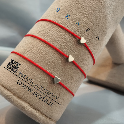 دستبند نخی قرمز با قلب کوچک استیل _ رنگ ثابت