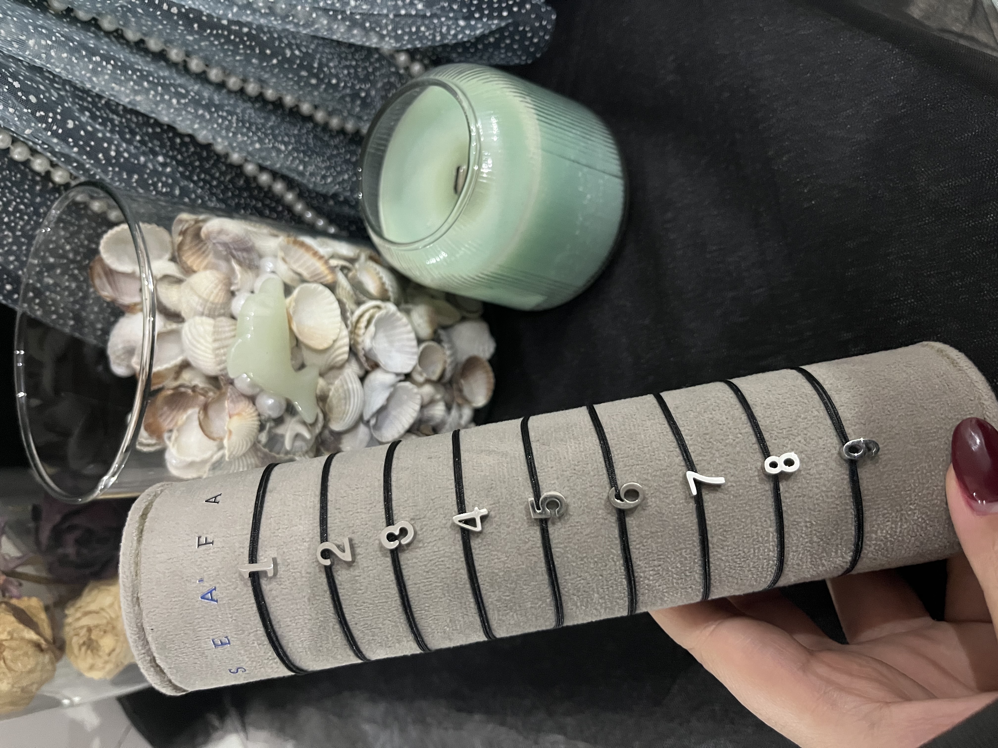 ناموجوددستبند حروف لاتین سفید مشکی با نخ مشکی _ سفارش از طریق اینستاگرام