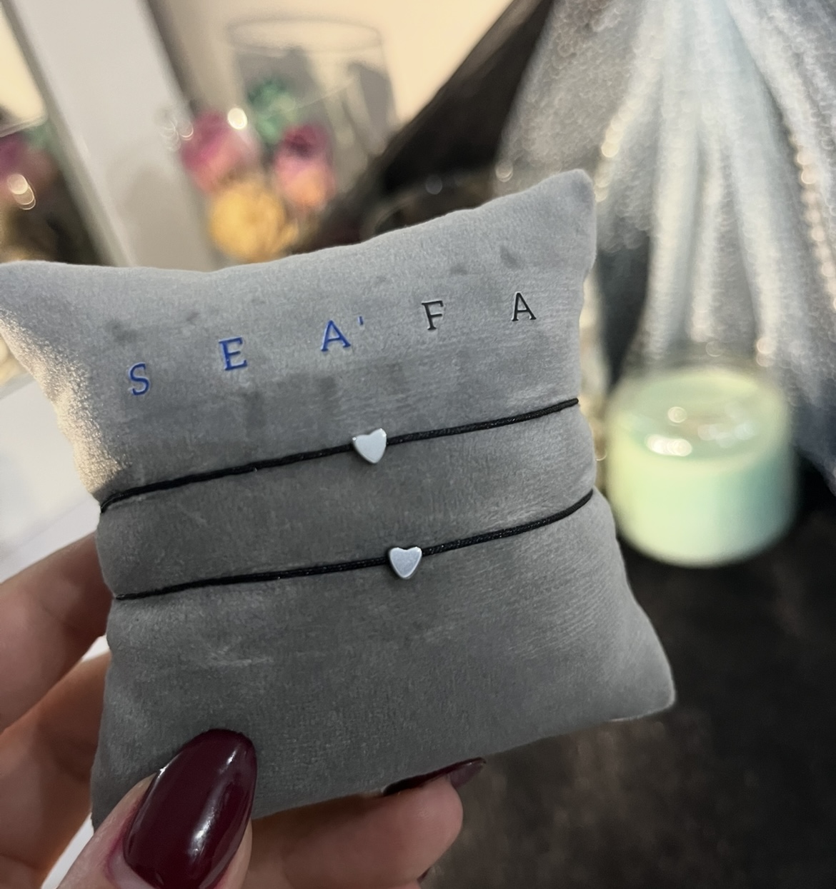 دستبند قلب صدفی با مهرههای استیل _ رنگ ثابت
